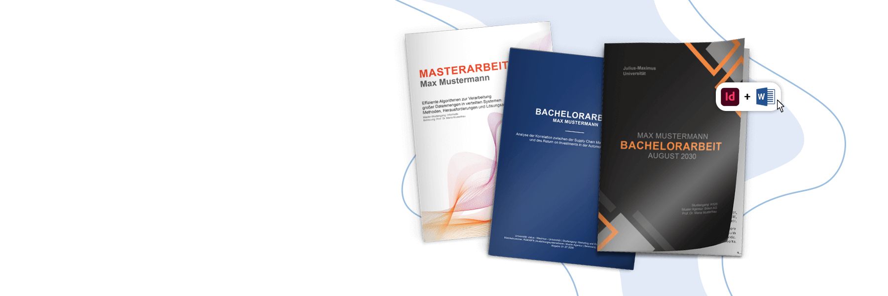 Danach kannst du das konfigurierbare Cover-Design als Word- oder InDesign-Vorlage herunterladen und nach Belieben bearbeiten.